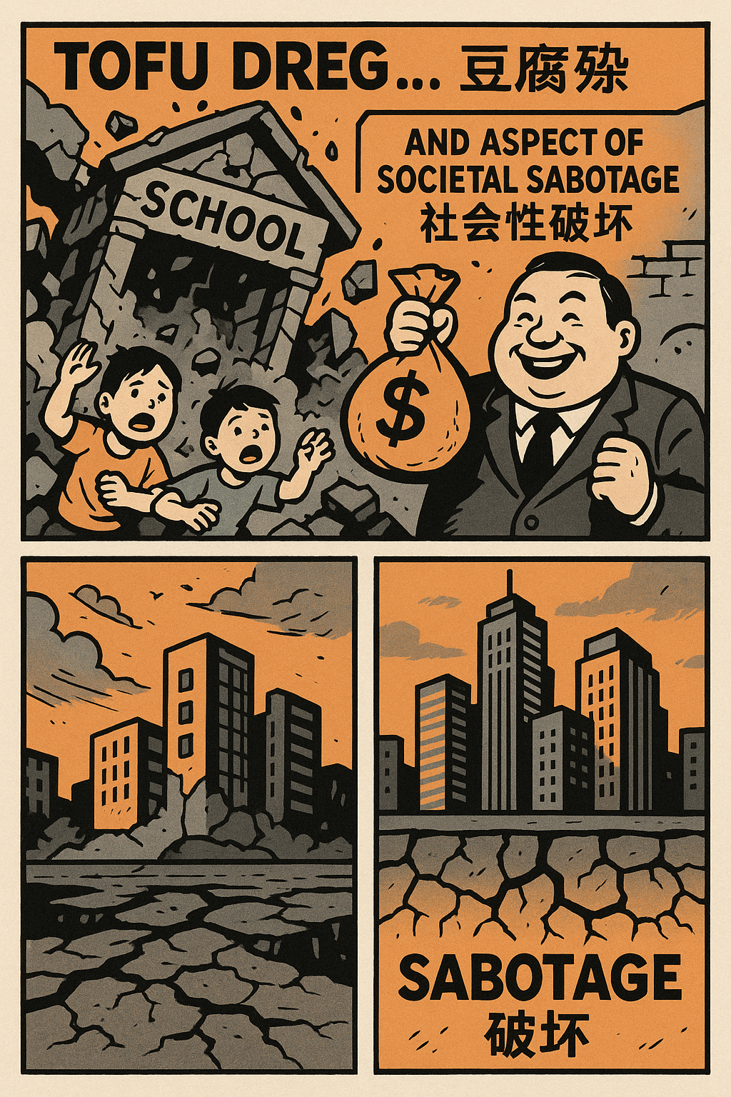 In literal terms, “tofu dreg” refers to construction made so poorly — from inferior materials, under bribed oversight, with falsified reports — that it crumbles under pressure like the soft, watery remains of bean curd. But symbolically, it’s far more insidious.